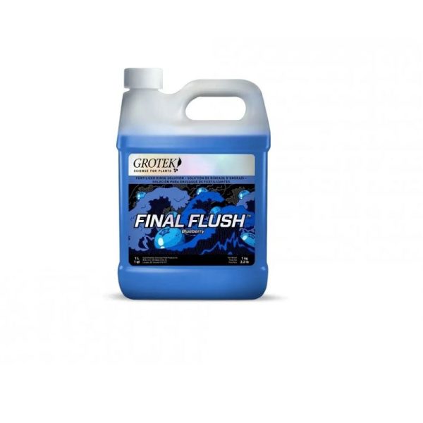 Final Flush Blueberry de Grotek es un limpiador de raíces con delicioso aroma a Blueberry especialmente desarrollado para eliminar los excesos de sales y fertilizantes acumulados en las raíces de las plantas, obteniendo cosechas libres de residuos y con mejor olor y sabor.